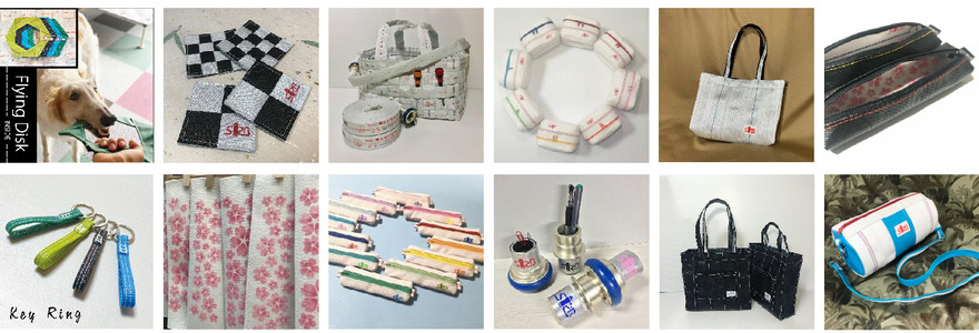 廃棄消防ホースを再利用し、バッグやポーチ、雑貨やペット用品などを製作し販売しております。
