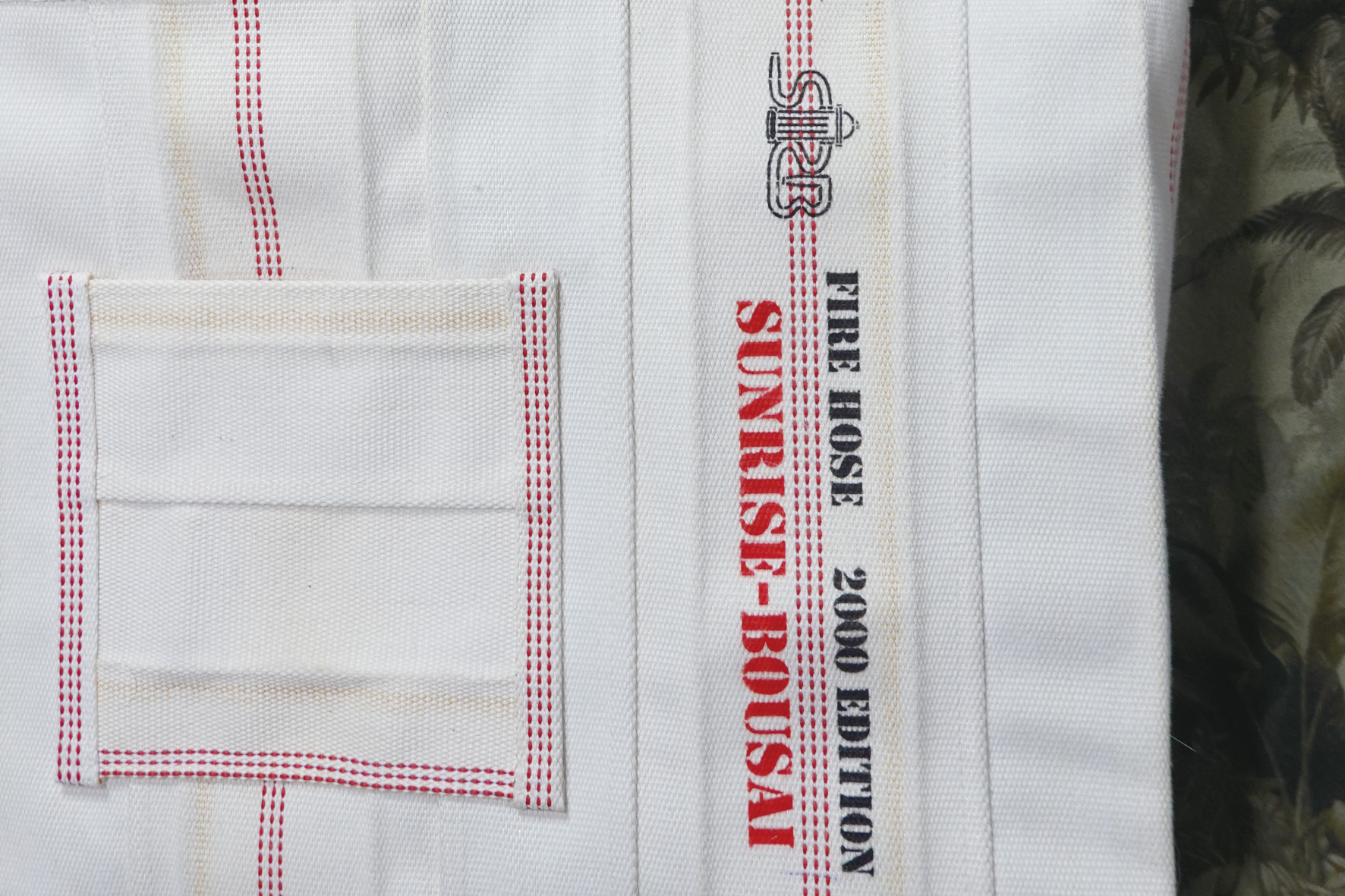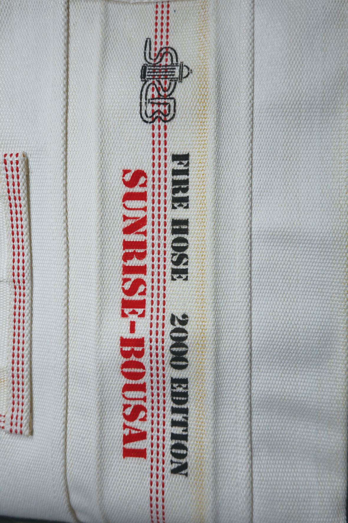 サンライズ防災のロゴ、ホースの年式等のオリジナルデザインをプリントしてあります。